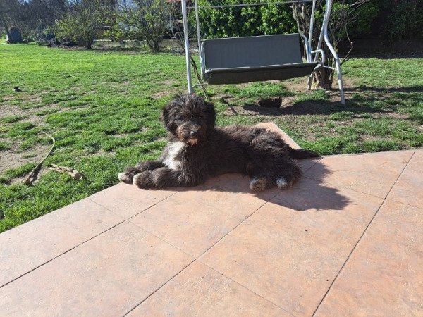 Feher fekete Aussiedoodle F1. Közepes energiájú kutya. Minimális szőr hullajtású. Veszettség elleni oltás. Chippelve bármikor elvihető