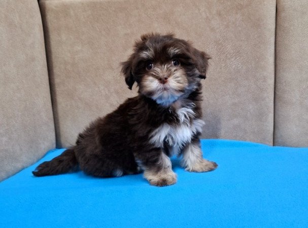 KÜLÖNLEGES, RITKA CSOKI KISFIÚ, NESQICK!!! Diamond Mini Miracle kennelben gyönyörű Bichon Havanese kiskutyáink megszülettek csodaszép törzskönyvezett, tenyészszemlés szülőpártól, kiváló champion vérvonalból. Anyuka szerb kutyus Alice Vimag Dream, az apuka pedig lengyel és cseh vérvonalú felmenőkkel rendelkezik Pearl Eyed Bears Pietro Jackson. A picik jól szocializált, gyermekszerető, végtelenül kedves kiskutyák. Szőrük nem hullik és nem okoz allergiát, azonban rendszeres fésülést igényel. A kiskutyák első oltással, 4x féregtelenítve, chippel, tenyésztői szerződéssel lesznek hazavihetőek, március 14-től 8 hetesen. Igény szerint törzskönyv és útlevél igényelhető. A szülők rendelkeznek egészségügyi szűrővizsgálattal, patella teszttel, így minimális az esélye hogy ezt a leggyakrabban előforduló fajtabetegséget a picik örökölték. Kennelünk a nébih által nyilvántartott felír és regisztrációs számmal is rendelkezik! Látogasson el honlapunkra ahol további fotókat és videókat talál a kiskutyákról, a szülőkről, illetve kikerült kiskutyáink is megtekinthetőek a Gazdi Fotók menüpontban: www.diamondminimiracle.freewb.hu Ár törzskönyvvel: 250.000Ft Ár törzskönyv nélkül: 180.000Ft Érdeklődni lehet telefonon: +36 20 33 721 33