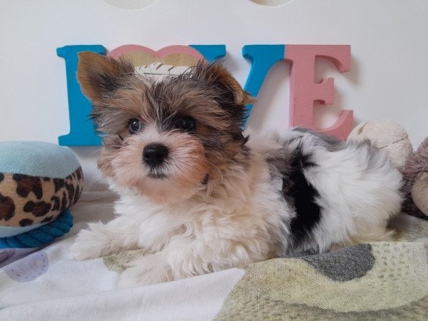 Szerető és felelősségteljes családját keresi egy gyönyörű szép, normál méretű, pufi testalkatú, egyik szeme kék, Biewer Yorkshire terrier fajtatiszta kisfiú. 2024. december 13-án született, rendelkezik a korának megfelelő oltásokkal, chippel és rendszeres féreghajtást kapott. Családban nevelkedik, tiszta és jó környezetben. Nagyon jó természetű, jó idegrendszerű, makk egészséges, játékos pöttöm. Eleinte félénk, de utána nagyszájú, kis zsivány gyerek. A fényképezése szinte lehetetlen, nem szeretne a jövőben modellkedni, így élőben sokkal szebb. A szülők törzskönyvesek (a pici nem), a helyszínen megtekinthetőek. Hatóságilag ellenőrzött, engedélyezett. A pici szerződéssel, számlával, hasznos útmutatatással a felneveléshez és garanciával kerül új otthonába. Bővebb tájékoztatást telefonon szívesen adok.