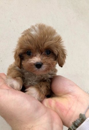 Eladó mini cavapoo kutyusok 2 oltással rendelkeznek 4 X voltak féregtelenitve lakásban nevelkedtek Igazán kicsi méretűek ahogy a fotón is látszik szobatisztaságra nevelésük elkezdve kutya pelusra Eü kiskönyvel szerződésel kerülnek új gazdijukhoz