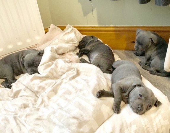 Staffordshire Bull Terrier kölykök Örömmel jelentjük, hogy szukánk 8 gyönyörű kiskutyának adott életet. már csak 5 van hátra. készen állnak arra, hogy új otthonukba menjenek, féregtelenítve, oltva és mikrochippel lesznek ellátva. az apa bejegyzett KC, az anya pedig a kislányunk, akit a kölyökgyűjteményben láthattok.