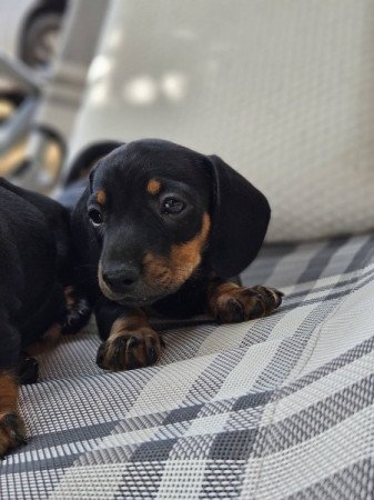 Rövid szőrű törpe tacskók keresik gazdijukat. Jelenleg 6 hetesek. 3 fiú és egy kislány.