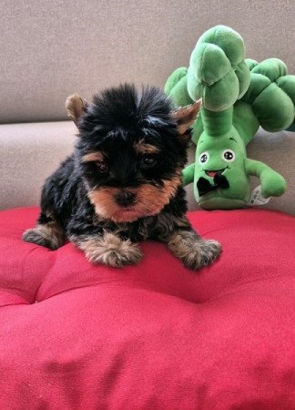 Gyönyörű mini Yorkshire kiskutyák eladó. Rendszeresen féregtelenítve, 2 oltással elvihető. Aranyos, játékos gyerekbarát kiskutya. Törzskönyves apától. Minőségi tápon nevelve, pelusra szoktatva.