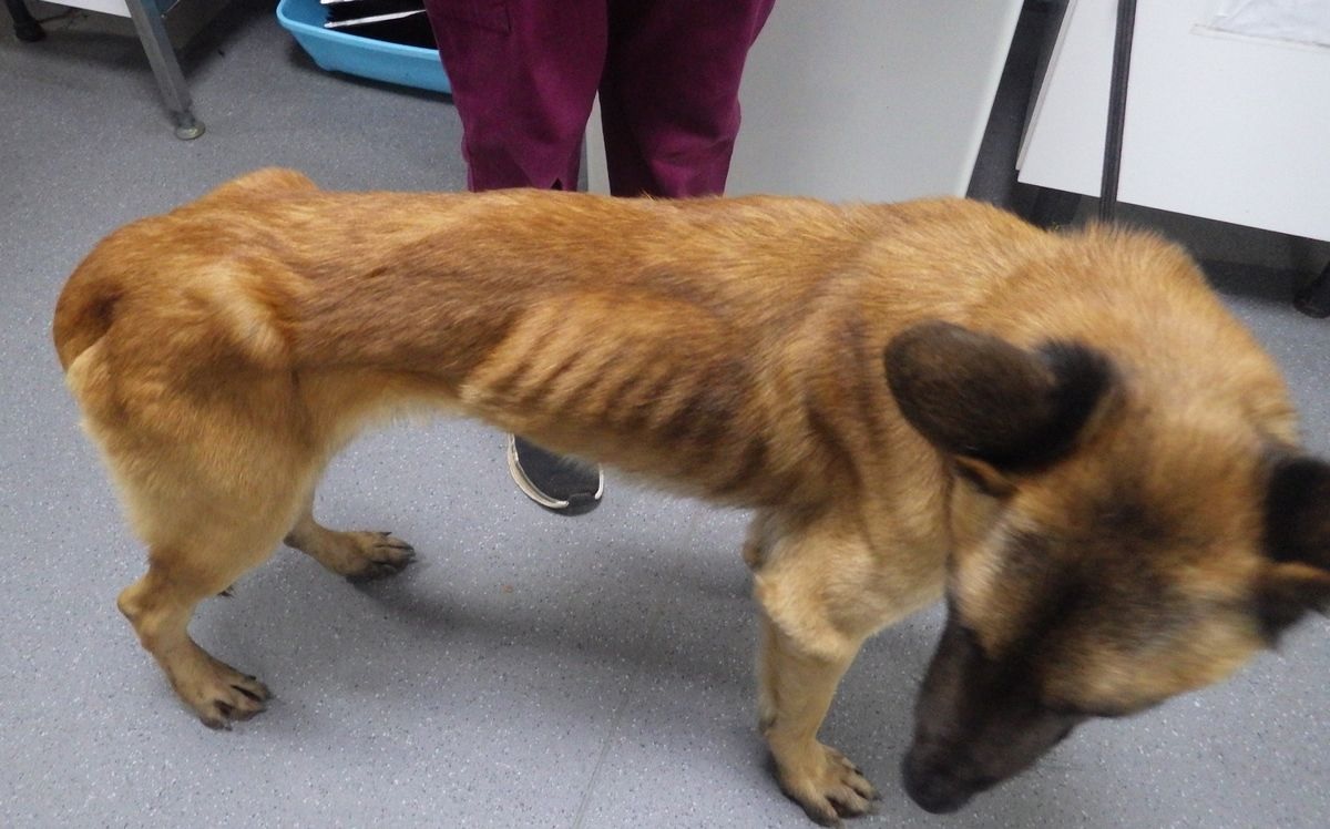 A kutyának életmentő vérátömlesztésre is szüksége volt, miután súlyos vérszegénységet állapítottak meg nála. Mind a négy állat „rendkívül leromlott testi állapotban” volt, miután egy koszos, sáros melléképületben tartották őket, ahol orrfacsaró bűz terjengett a vizelettől és az ürüléktől.