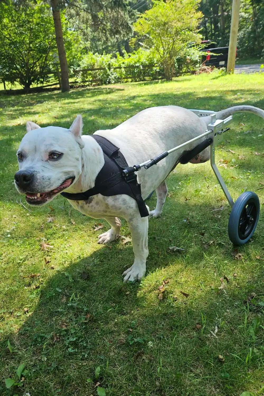 „Miközben a lábamputációból gyógyult, sajnos elszakadt a hátsó lábában az egyetlen megmaradt keresztszalagja (ACL), valószínűleg azért, mert a hiányzó láb miatt túlterhelődött” – mondja Bielawski. „Átesett az ACL-műtéten, majd kiterjedt fizikoterápián, többek között hidroterápián is.”