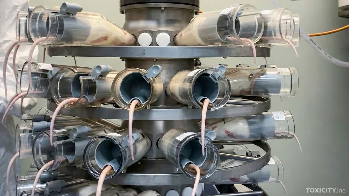 A törpemalacokat is kamerák rögzítik, amint rémületükben visítanak, miközben folyadékot tesztelnek frissen, szándékosan ejtett hátsebeiken, míg a patkányokat műanyag csövekbe rögzítik, és kényszerítik őket a tesztanyagok belélegzésére. A képek közül sok annyira megrázó, hogy nem hozható nyilvánosságra.